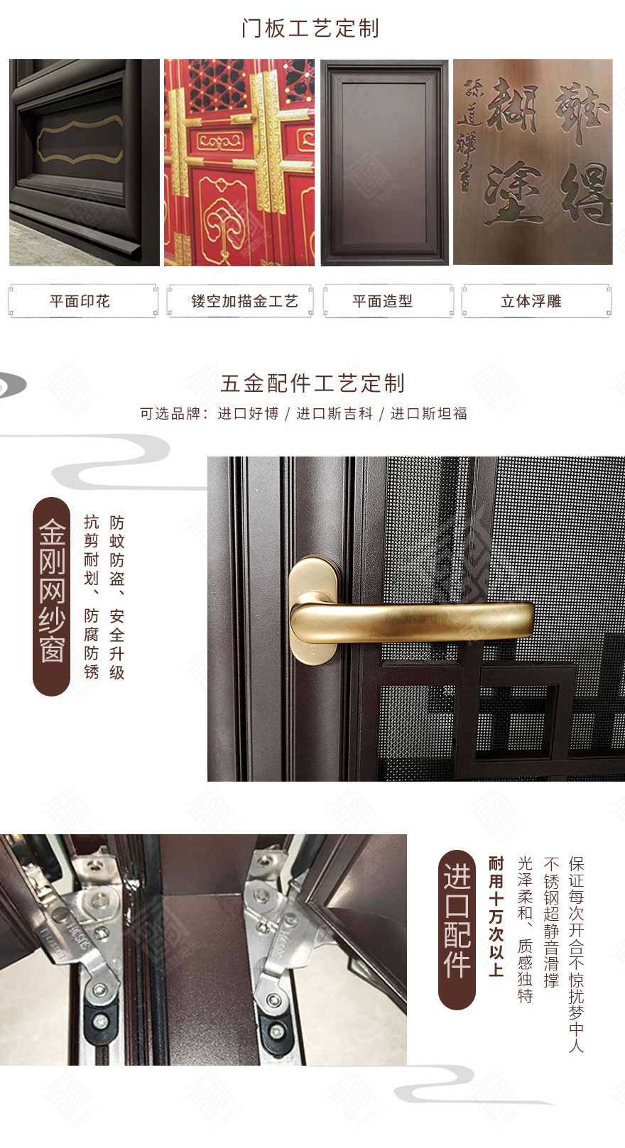 新中式门窗是现代工艺与传统元素的碰撞。人们对中式门窗的期待必须适应现代人的生活。经典的中式宅院与周边环境谦逊融洽,与之相匹配的新中式门窗更是以风景和生活为主中式门窗——中式意韵之美中式风格中,我们常见的一种不可或缺的元素就是中式花格窗纱一体,让客户入住更安心。镂空花窗格,集采光透风、观景入画、装饰美化作用于一身,丰富的花纹图案体味出幽雅的人文趣。大理中式门窗哪里有卖?